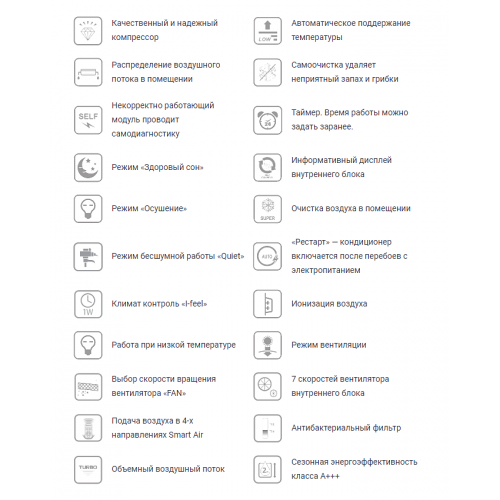 | Уровень шума внутреннего блока (дБ) | 18-39 дБ |